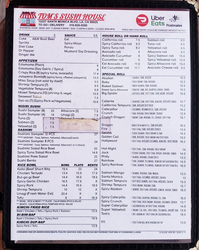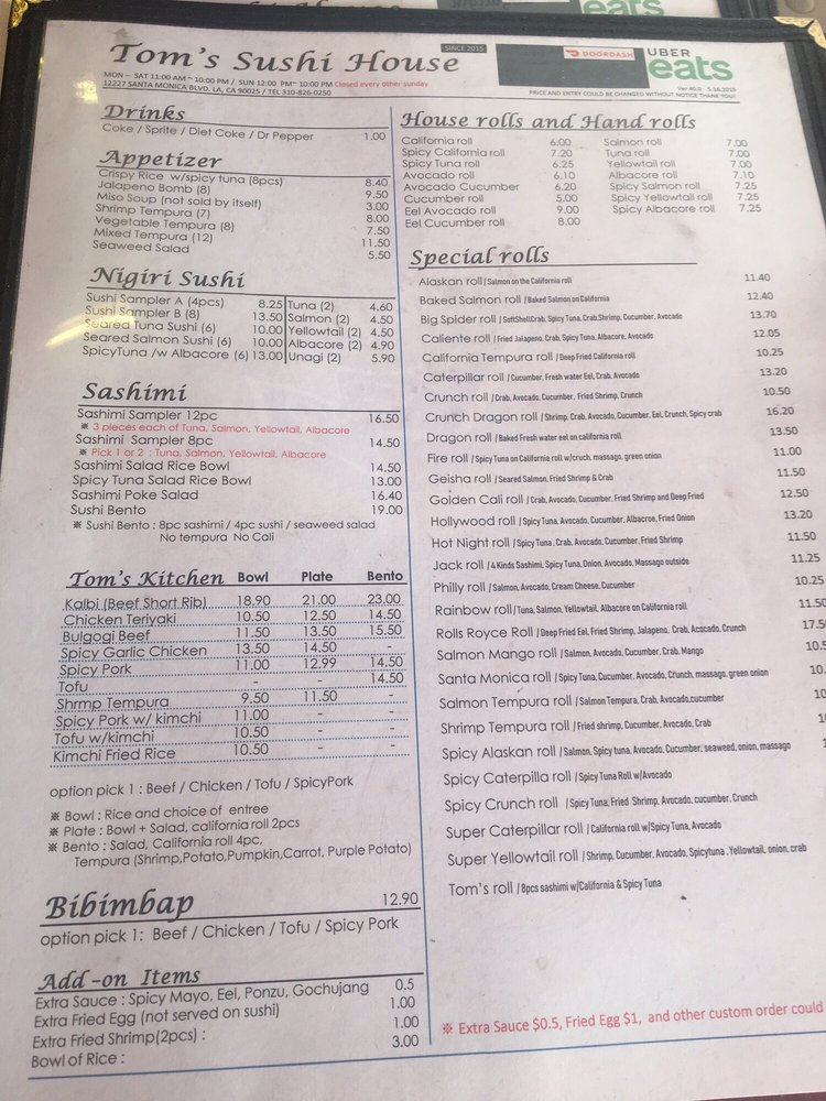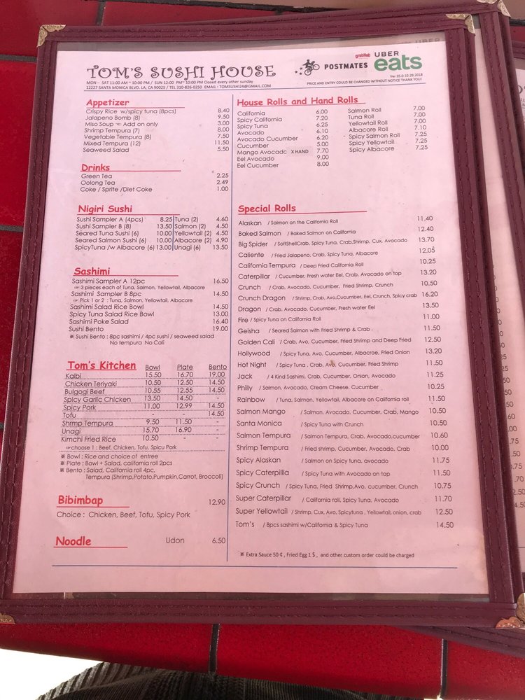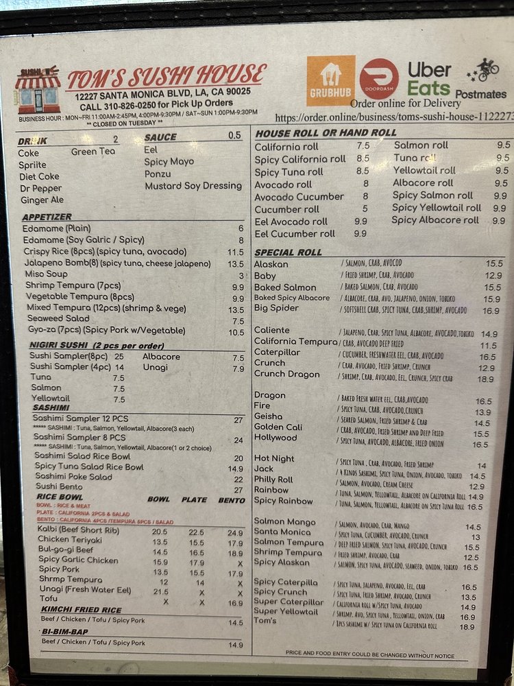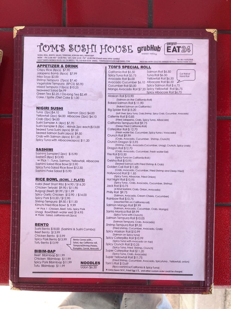 Tom's Sushi House Menu (Update 2025)