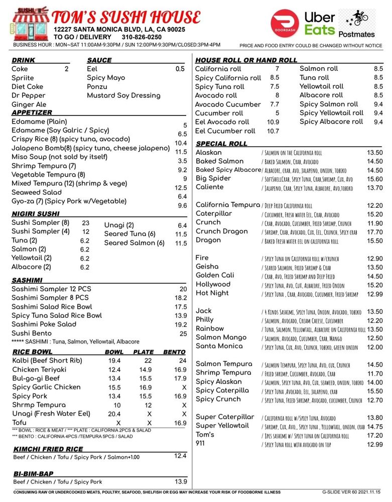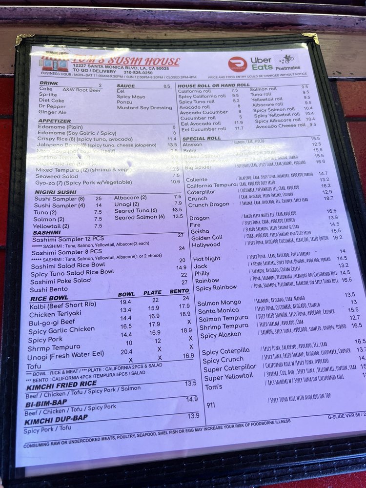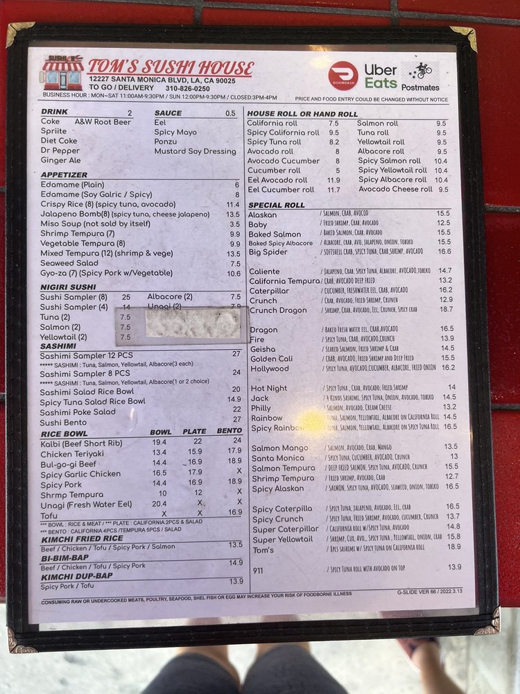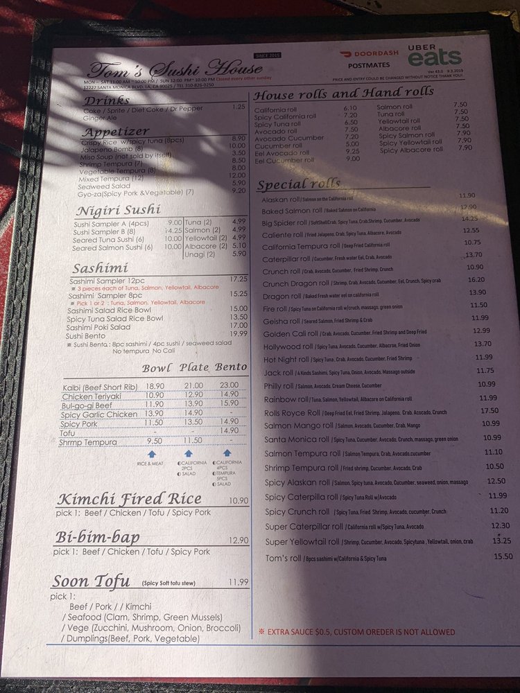 Tom's Sushi House Menu (Update 2025)