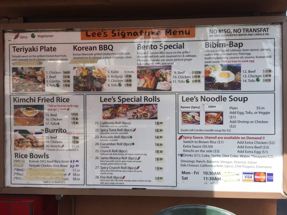 Pork marinated in house special spicy sauce, sauteed with chopped garlic and green pepper, served with rice, salad and pieces of california rolls.soy sauce and hot sauce on the side.